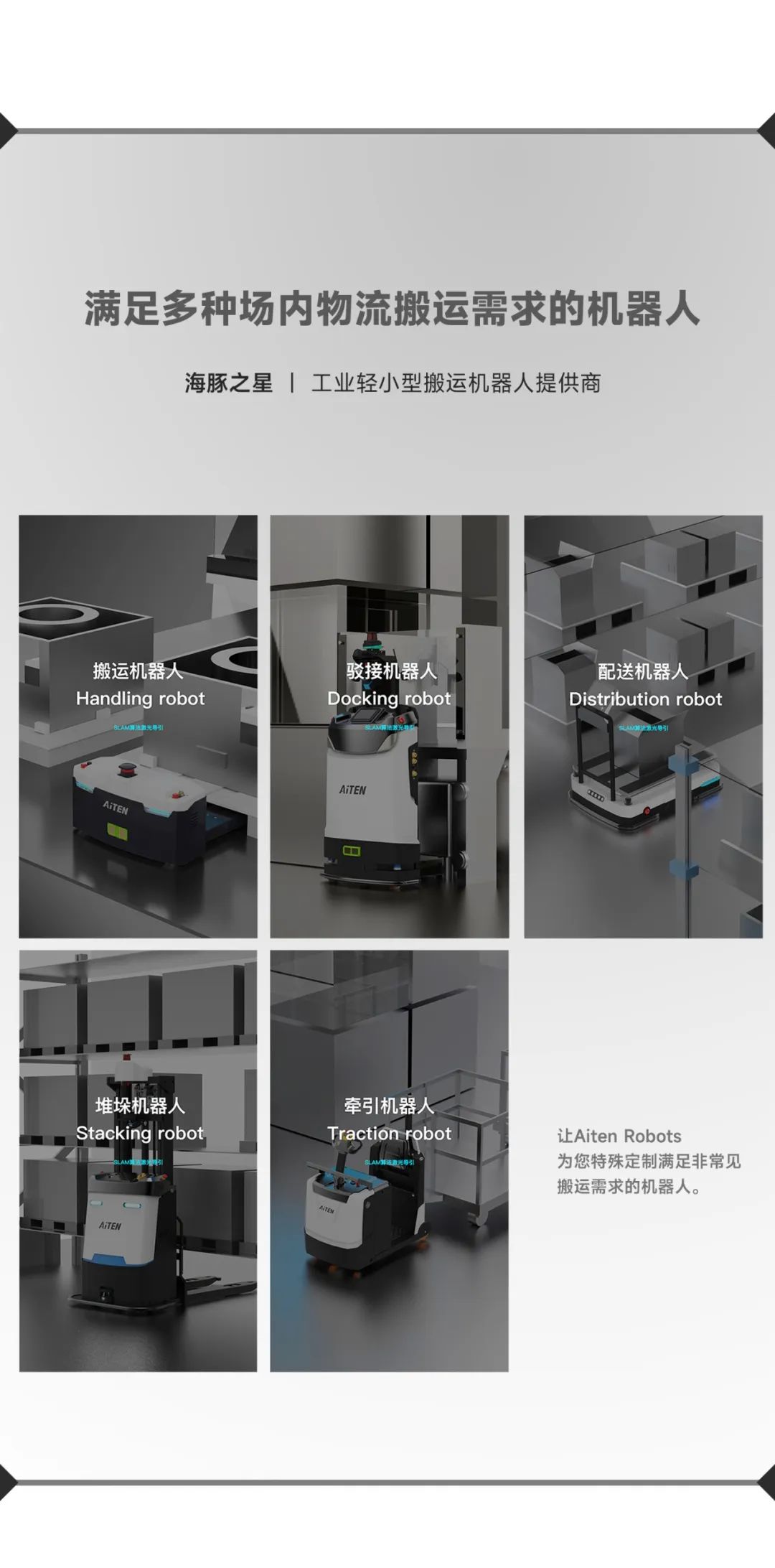 蘇州海豚之星智能科技有限公司成立于2017年,總部位于江蘇省蘇州市,致力于成為搬運機器人的領軍企業(yè)。