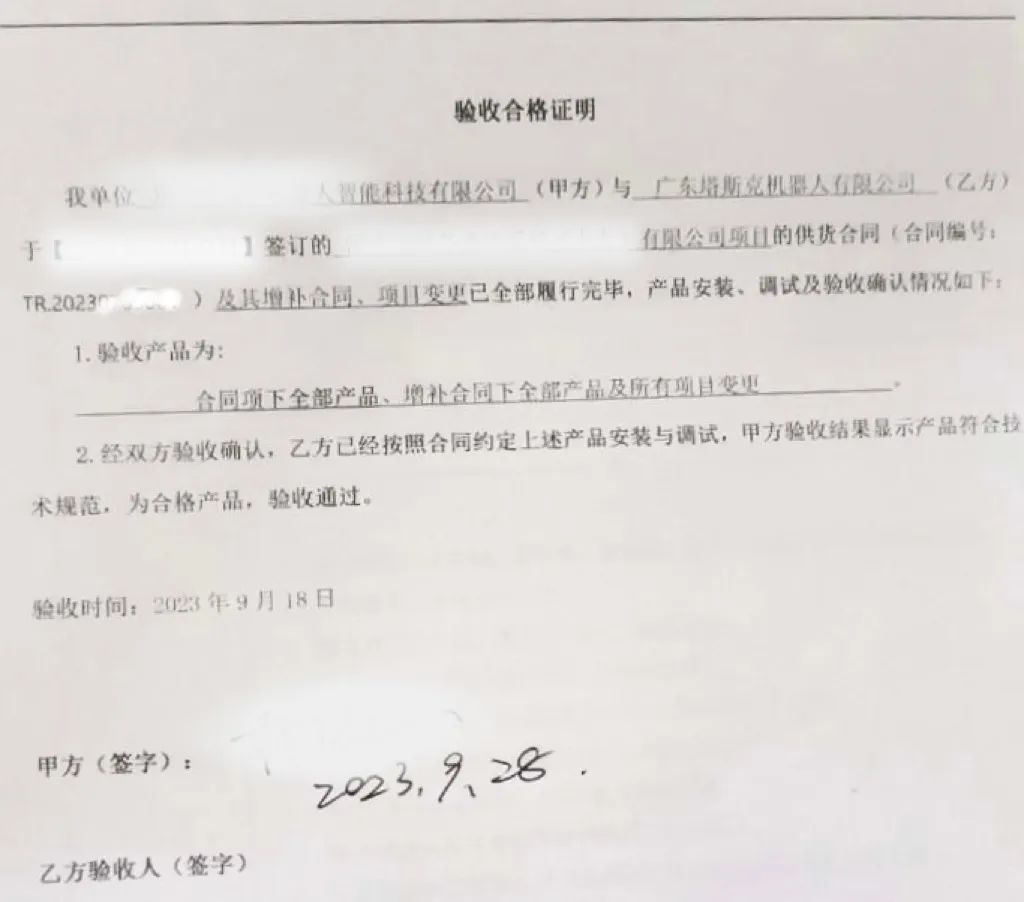 【項(xiàng)目驗(yàn)收合格證明】2023年9月4日設(shè)備進(jìn)場(chǎng),9月28日驗(yàn)收,從進(jìn)場(chǎng)實(shí)施到上線運(yùn)行、驗(yàn)收通過(guò),僅用時(shí)14天。