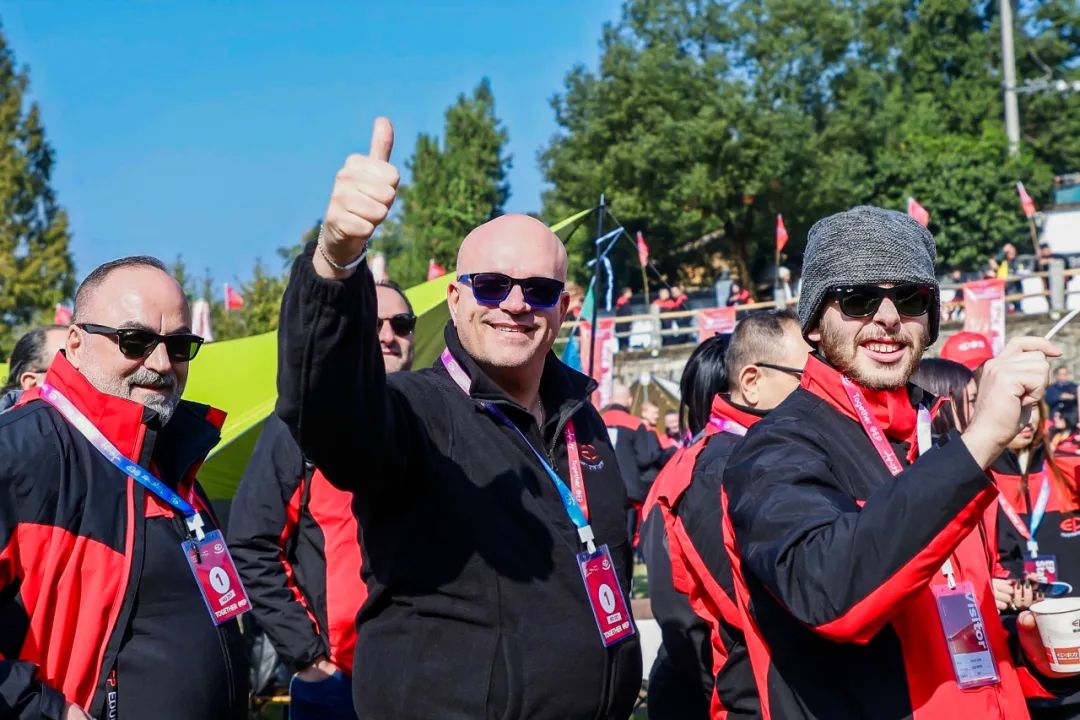 經過激烈角逐,來自國內的獵豹隊17號選手孟凡云最終以36分19秒的成績率先沖線,成為本次騎行越野賽中第一個抵達終點的選手!隨后浩浩蕩蕩的騎行隊伍陸續(xù)完賽,與徒步隊伍齊聚終點,開啟露營狂歡趴。