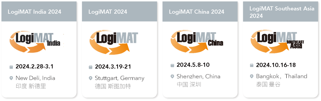 期待與用戶(hù),企業(yè)明年在印度,德國(guó),中國(guó)和泰國(guó)的LogiMAT上相見(jiàn)!更新信息請(qǐng)登錄www.logimat.cn,或聯(lián)系譚小姐(電話(huà):+86 (21)50811929)。