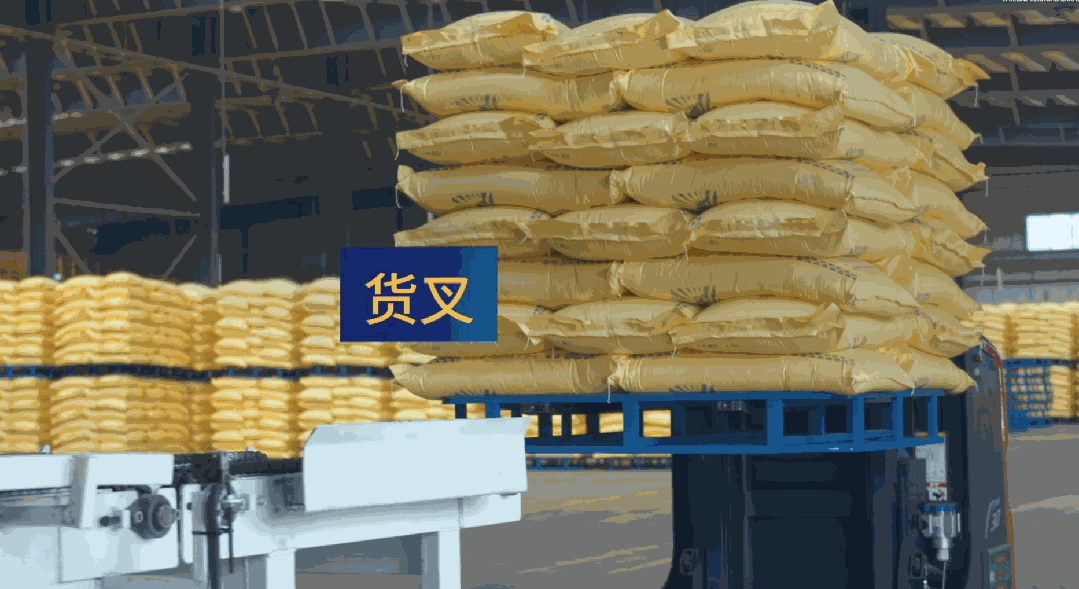 在其化肥生產(chǎn)制造車間的成品下線環(huán)節(jié),目前仍采用傳統(tǒng)人工叉車來(lái)完成搬運(yùn)任務(wù),加之成品倉(cāng)儲(chǔ)采用的是軟包堆疊的方式,且單垛貨物較重,直接給項(xiàng)目增加了一層難度: