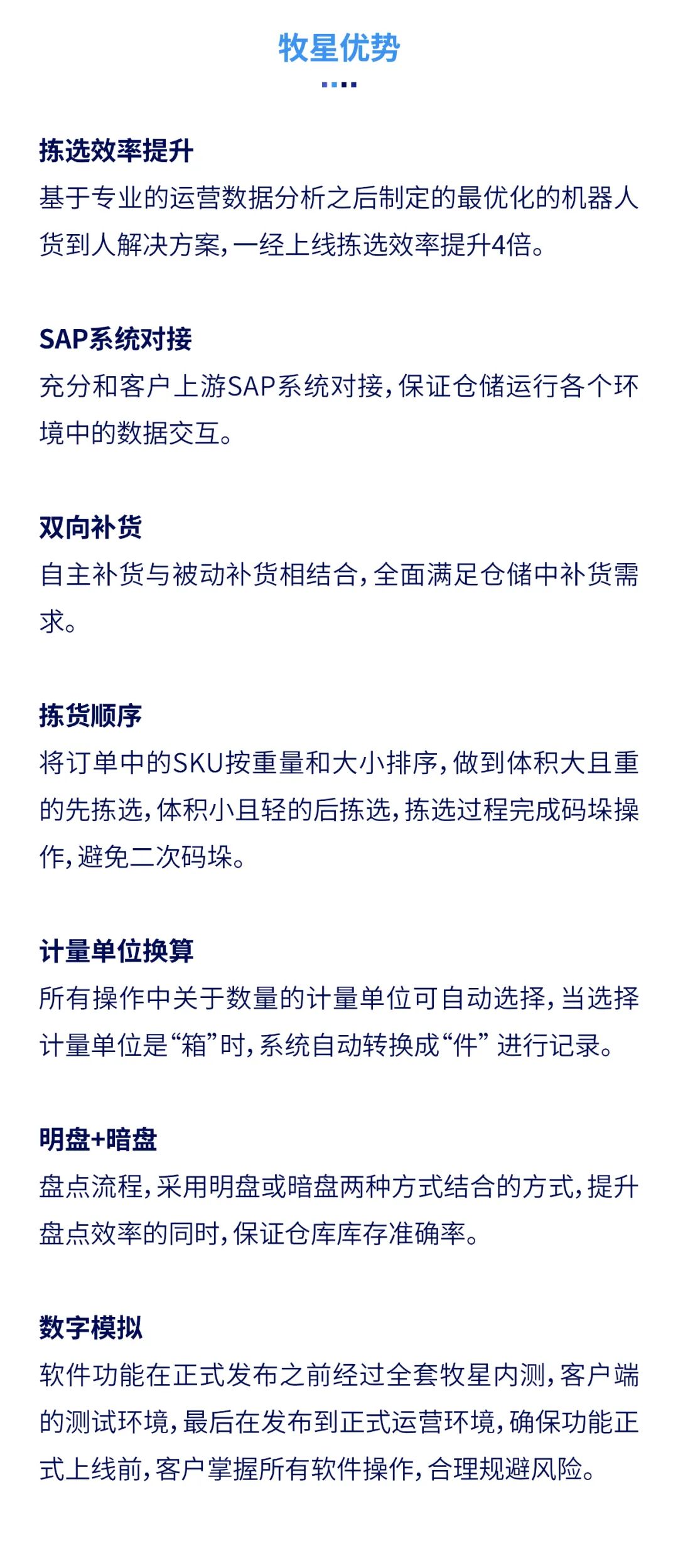 牧星智能是以算法為核心,以智能倉儲(chǔ)機(jī)器人為載體的智能倉儲(chǔ)整體解決方案提供者和踐行者,主要從事智能倉儲(chǔ)系統(tǒng)的開發(fā)、倉儲(chǔ)項(xiàng)目的系統(tǒng)集成實(shí)施以及倉儲(chǔ)系統(tǒng)相關(guān)的規(guī)劃、設(shè)計(jì)和咨詢業(yè)務(wù)。