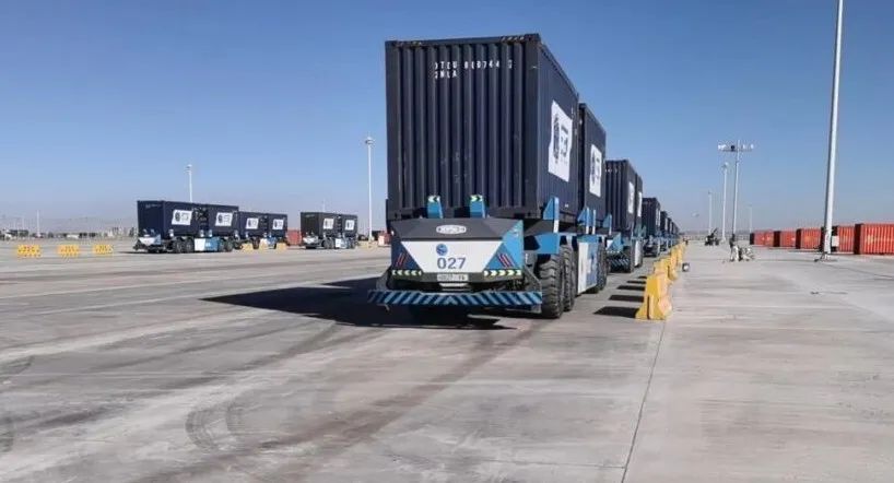 甘其毛都-嘎順蘇海圖口岸位于邊境線703號界標附近,是中蒙之間最大的公路貨運口岸。周圍是茫茫的戈壁灘,常年干燥。從今年3月AGV砂石路面試運行,到10月超短周期完成前期建設(shè),成果可喜。10月底,振華重工參建的蒙古國AGV跨境貨物運輸項目,其蒙古新園區(qū)交互運行場地的磁釘導航地圖與中方現(xiàn)運輸?shù)缆穼域炞C和全網(wǎng)基站測試工作全部完成。目前,VMS(車輛管理系統(tǒng))系統(tǒng)和TOS(管理控制系統(tǒng))已經(jīng)對中方老園區(qū)實現(xiàn)車輛調(diào)度和任務(wù)指令空箱運輸貫通聯(lián)調(diào)聯(lián)試工作,實現(xiàn)通車試運行。