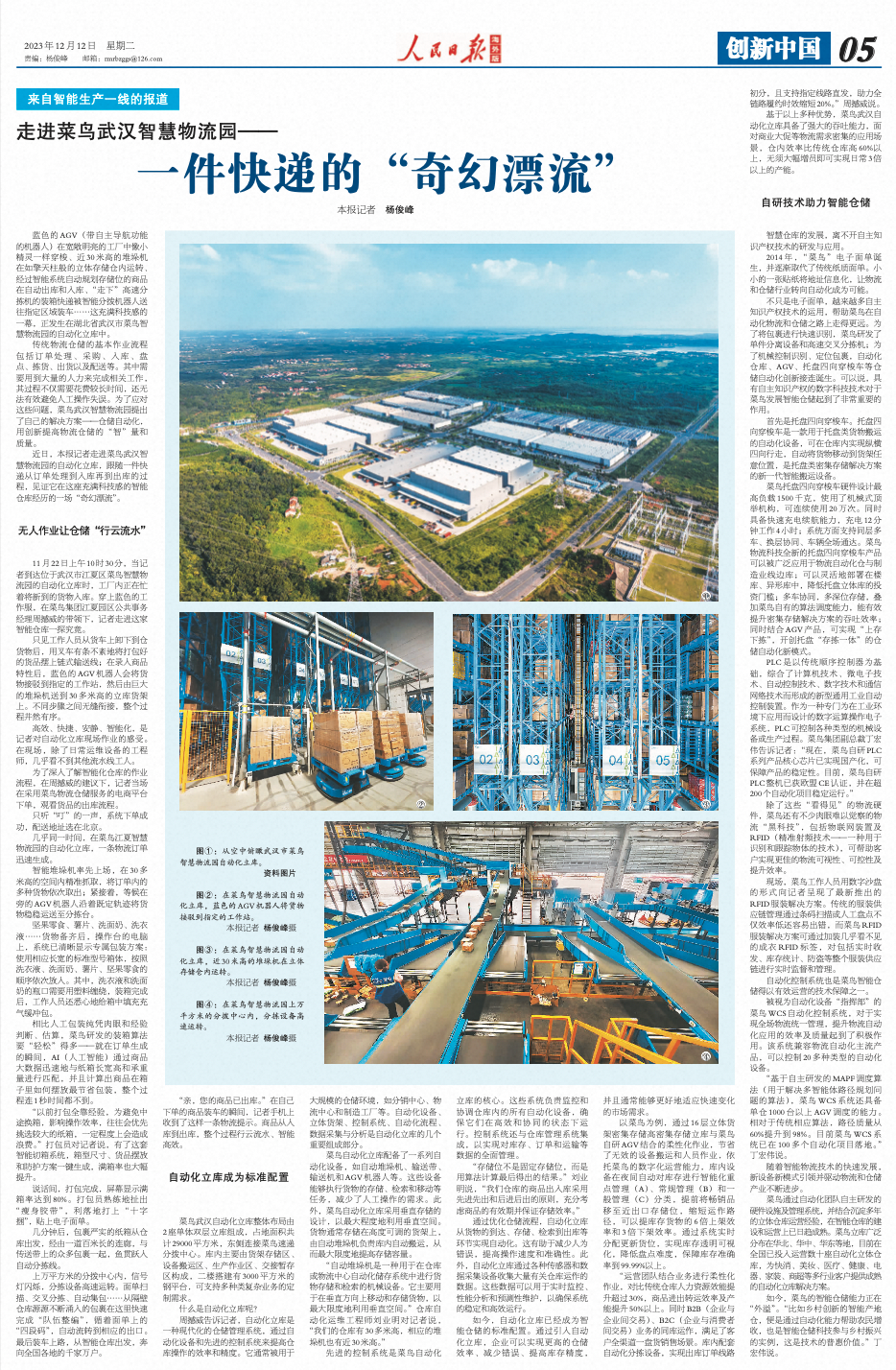 藍色的AGV(帶自主導航功能的機器人)在寬敞明亮的工廠中像小精靈一樣穿梭、近30米高的堆垛機在如擎天柱般的立體存儲倉內(nèi)運轉(zhuǎn)、經(jīng)過智能系統(tǒng)自動規(guī)劃存儲位的商品在自動出庫和入庫、“走下”高速分揀機的裝箱快遞被智能分撥機器人送往指定區(qū)域裝車……這充滿科技感的一幕,正發(fā)生在湖北省武漢市菜鳥智慧物流園的自動化立庫中。