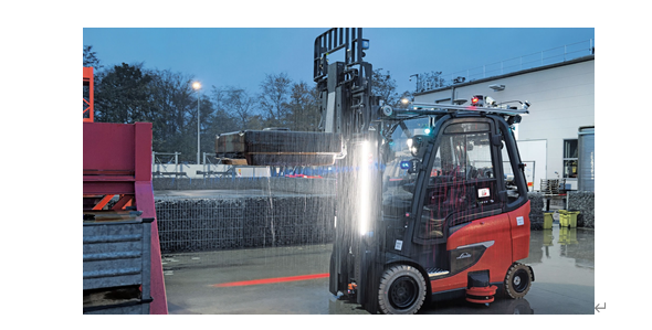 Hanke說:"我們的目標是盡可能將安全掃描儀、攝像頭和傳感器集成到車輛輪廓中,使其尺寸盡可能接近標準叉車。在大廳里,叉車使用激光掃描儀進行自我定位,在室外則使用差分 GPS(全球定位系統(tǒng))(一種提高 GPS 精確度的方法),并在室內(nèi)與室外區(qū)域的過渡處使用額外的本地傳感器。與手動叉車不同的是,自動車輛總是在規(guī)定的路線上向后行駛,這樣在緊急停車時,貨物就不會從貨叉上滑落。"