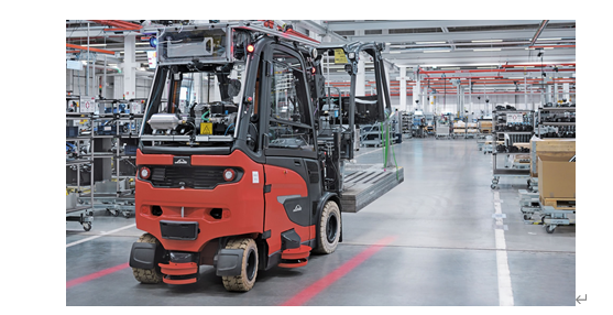 從明年開始,自動平衡重叉車將得到進一步的開發(fā)和測試,以便將來在林德物料搬運工廠承擔特定的物料流任務(wù)。其中之一是護頂罩的運輸,將其從預組裝到主組裝線的特殊負載載體上。