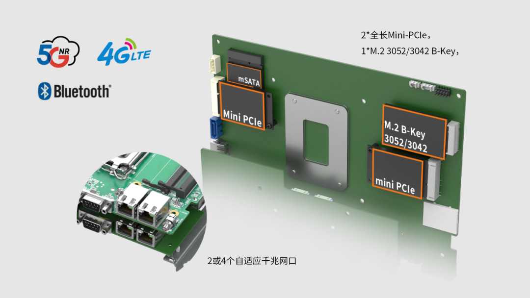 ?? 1*M.2 3052/3042 B-Key,帶SIM卡槽,帶PCIeX1和USB2.0信號,支持5G NR模塊