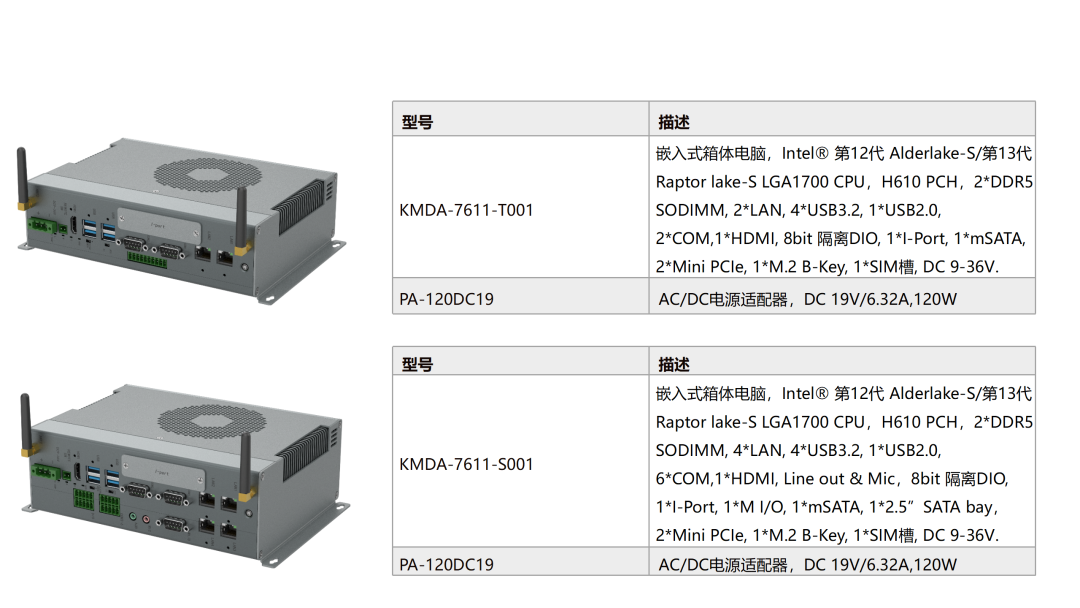 KMDA-7611是一款高性能箱體電腦,采用H610芯片組,搭載Intel?第12代Alder lake-S/第13代Raptor lake-S系列處理器,IO功能完整,體積大小適中,適用于無人叉車、機器視覺和工業(yè)控制等行業(yè)和領(lǐng)域。