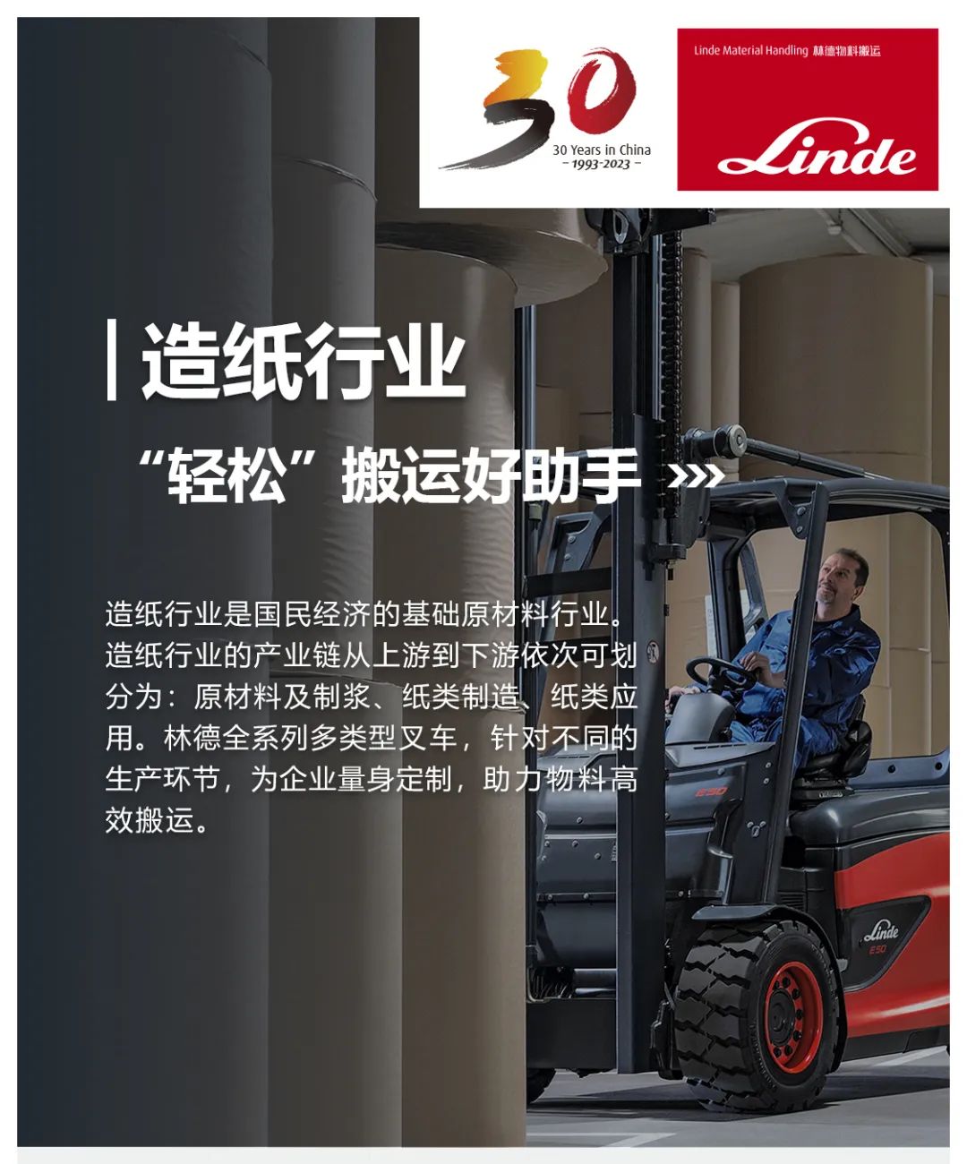 “紙”日可待 | 林德叉車助力造紙行業(yè)高效搬運(yùn)