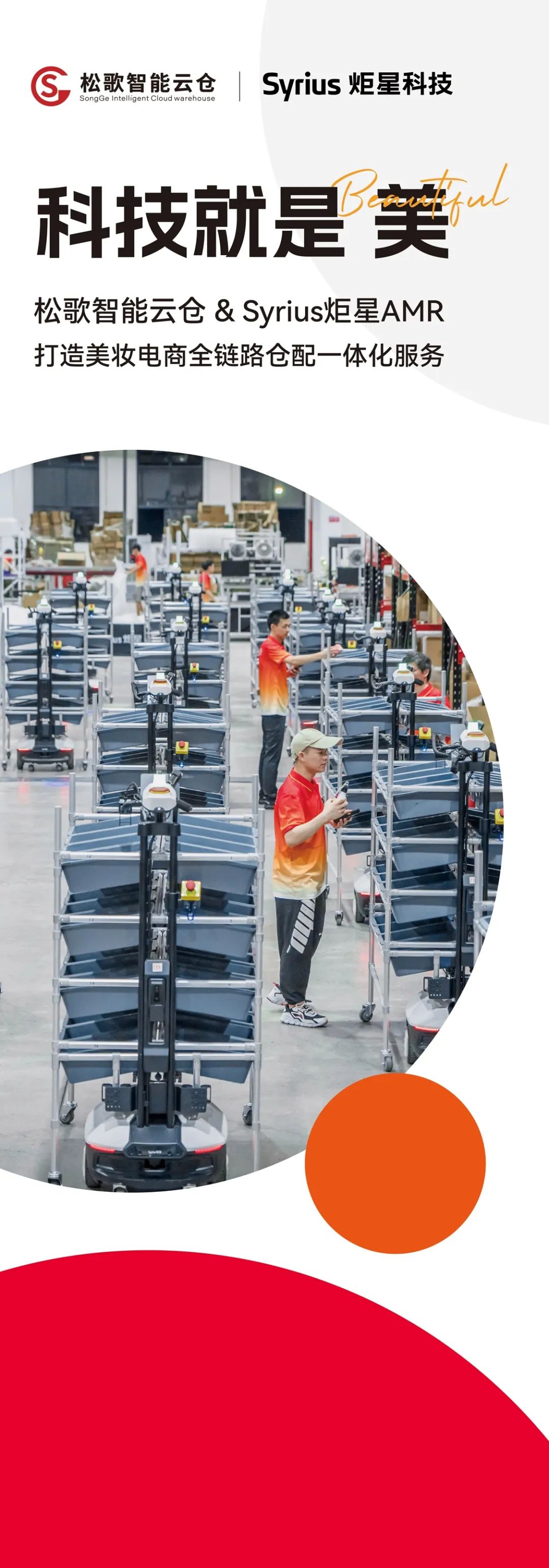 美妝護膚品易受季節(jié)、宣傳、潮流、品牌等因素的影響,大促期間訂單急劇暴漲,爆倉現(xiàn)象屢見不鮮。據(jù)悉,松歌智能云倉在浙江省義烏市的倉庫面積達4萬平方米,峰值訂單達60萬單/天,倉庫錯漏發(fā)卻可以控制在十萬分之三以內(nèi)。效率提升的背后,離不開倉庫的精細化管理。依托領(lǐng)先的AMR解決方案,Syrius炬星科技助力松歌智能云倉打造美妝電商全鏈路倉配一體化服務(wù)。