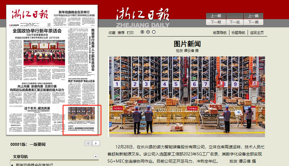 12月28日,在長(zhǎng)興縣的諾力智能裝備股份有限公司,立體倉(cāng)庫(kù)高速運(yùn)轉(zhuǎn),技術(shù)人員忙著趕制新能源叉車。該公司入選國(guó)家工信部2023年5G工廠名錄,其數(shù)字化設(shè)備全部實(shí)現(xiàn)5G+MEC全連接協(xié)同作業(yè)。目前公司正開足馬力,沖刺全年紅。