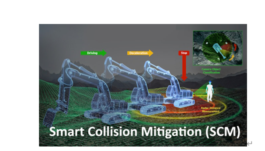 Develon的智能碰撞緩解(SCM)系統(tǒng)在 "車輛技術(shù)與先進移動性 "類別中獲獎。該主動安全系統(tǒng)通過攝像頭和雷達傳感器融合技術(shù)檢測挖掘機周圍的物體。