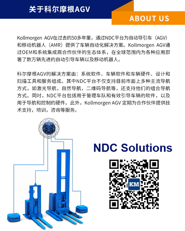 Kollmorgen AGV在過(guò)去的50多年里,通過(guò)NDC平臺(tái)為自動(dòng)導(dǎo)引車(chē)(AGV)和移動(dòng)機(jī)器人提供了車(chē)輛自動(dòng)化解決方案。通過(guò)OEM和系統(tǒng)集成商合作伙伴的生態(tài)體系,在全球范圍內(nèi)為各種應(yīng)用部署了數(shù)萬(wàn)輛先進(jìn)的自動(dòng)引導(dǎo)車(chē)輛。