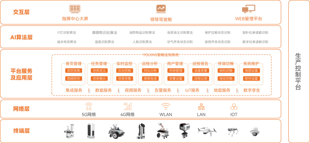 優(yōu)艾智合運用機器人運動控制技術、AI視覺算法技術、多機調(diào)度及在線監(jiān)控技術,多機調(diào)度及在線監(jiān)控技術,為客戶提供一站式智慧巡檢解決方案,協(xié)助能源行業(yè)客戶打造智慧電廠、智慧電網(wǎng)等新型智慧管理系統(tǒng),為客戶提供集約化、智慧化、無人化的先進巡檢運維能力。