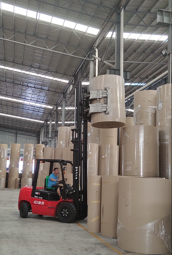 紙業(yè),成品紙卷大都為柱狀造型,形狀特殊,重量重,常規(guī)貨叉難以搬運,且容易損壞貨物。