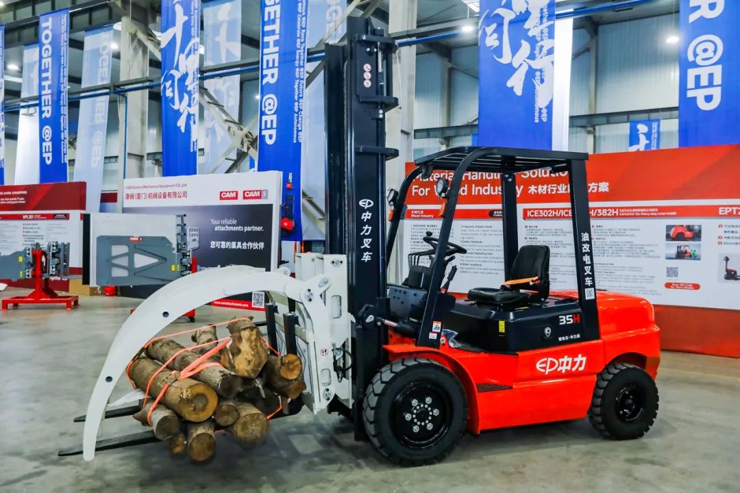 中力木業(yè)專用車重心低,車輛穩(wěn)定可靠,可越野,充分滿足室內外作業(yè)。同時針對木業(yè)可加裝特殊屬具,圓抱夾靈活抓緊原木,快速搬運;成品區(qū),板材重且容易滑動,中力加寬門架,牢牢托舉,并且特殊優(yōu)化起升、行走,做到平穩(wěn)起步和精細操作。