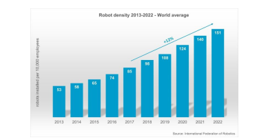 新的全球平均機器人密度創(chuàng)歷史新高 ? International Federation of Robotics