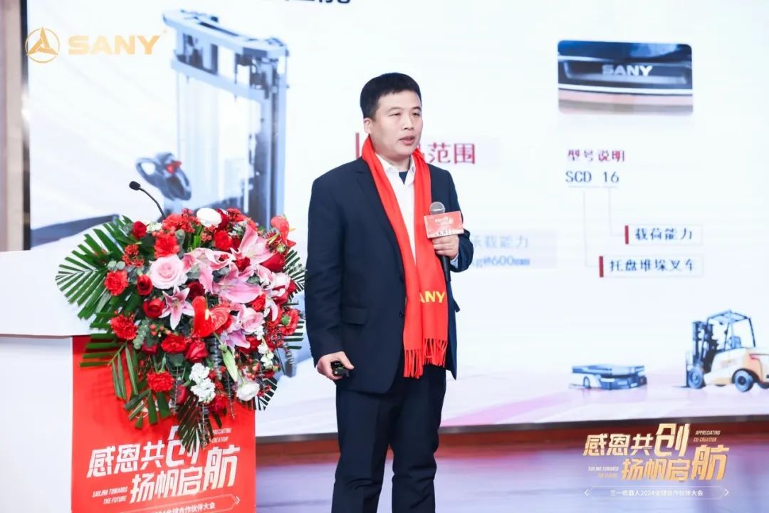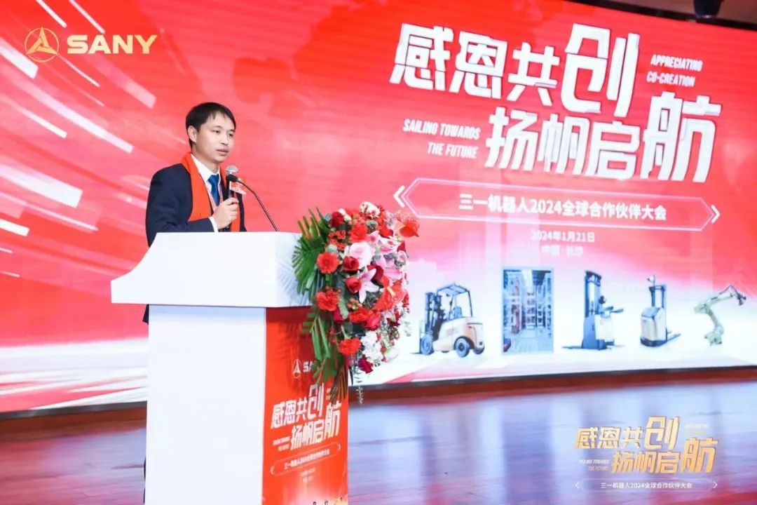 三一機(jī)器人科技有限公司副總經(jīng)理、營銷服務(wù)總監(jiān)胡柱做三一機(jī)器人公司整體業(yè)務(wù)發(fā)展報告。在過去的一年中,三一機(jī)器人穩(wěn)步推進(jìn)海內(nèi)外產(chǎn)業(yè)布局,市場營收超十億元,外部銷售占比超50%,在智能倉儲、物流、智慧工廠等領(lǐng)域不斷取得新的突破,品牌影響力再上新臺階。2024年,三一機(jī)器人將繼續(xù)秉承“利他、創(chuàng)新引領(lǐng)”等核心價值觀,堅持價值營銷,攜手合作伙伴共創(chuàng)美好未來。
