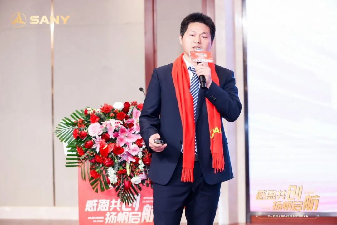 表彰儀式,三一機(jī)器人舉辦了隆重的2023年度優(yōu)秀經(jīng)銷商表彰儀式,其中上海臻慶機(jī)械設(shè)備有限公司榮獲2023年度鉆石經(jīng)銷商并獲得一輛售后服務(wù)車大獎。儀式過后邀請優(yōu)秀經(jīng)銷商代表登臺分享成功經(jīng)驗(yàn)。