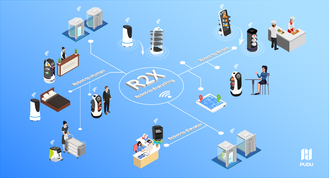 在本次合作中,普渡科技也首次提出R2X,即Robot-to-Everything的概念,形成機(jī)器人與周圍環(huán)境、機(jī)器人與人、機(jī)器人與機(jī)器人之間的相互協(xié)同。通過建立統(tǒng)一的協(xié)議和標(biāo)準(zhǔn)規(guī)范,降低不同廠商機(jī)器人的協(xié)同門檻,實(shí)現(xiàn)服務(wù)機(jī)器人與包括梯控在內(nèi)的IoT生態(tài)有機(jī)聯(lián)動,為客戶提供更加豐富的解決方案,為行業(yè)創(chuàng)造新的增長曲線。