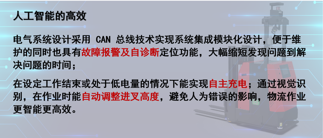 杭叉智能通過(guò)定制化設(shè)計(jì)專(zhuān)業(yè)的智能物流整體解決方案,以最優(yōu)最簡(jiǎn)的設(shè)計(jì)精準(zhǔn)達(dá)到用戶(hù)需求。0.3t激光導(dǎo)引平衡重AGV可廣泛應(yīng)用于各種密集倉(cāng)儲(chǔ)需求的自動(dòng)物流搬運(yùn)場(chǎng)景,如食品、藥品、電商等,是滿(mǎn)足企業(yè)低承載高樓層搬運(yùn)的不二選擇。