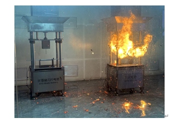 這是一場耗資巨大的表演:在中國深圳比亞迪總部的門廳里,他們每天都要用木匠的釘子釘穿鋰離子電池,不出所料,鋰離子電池會突然爆炸起火,場面十分壯觀。然后,他們在防爆玻璃箱中用一種所謂的基于磷酸鐵鋰的刀片電池重復實驗,這種電池顯然完全不受穿刺的影響。