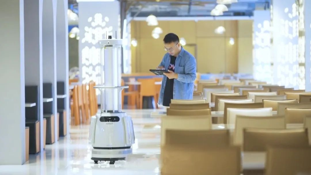 服務機器人應用技術(shù)員對消殺機器人進行實施部署