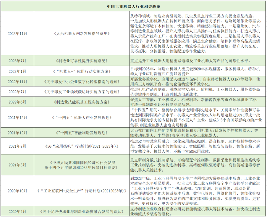 近年來(lái),我國(guó)政府及相關(guān)部門(mén)為加快制造強(qiáng)國(guó)建設(shè)步伐,推動(dòng)工業(yè)機(jī)器人產(chǎn)業(yè)發(fā)展,相繼出臺(tái)了一系列政策措施。這些政策扶持措施有助于促進(jìn)工業(yè)機(jī)器人行業(yè)的健康發(fā)展,推動(dòng)行業(yè)技術(shù)創(chuàng)新、產(chǎn)業(yè)升級(jí)和國(guó)際競(jìng)爭(zhēng)力的提升。同時(shí),也為企業(yè)提供了更多發(fā)展的機(jī)遇。
