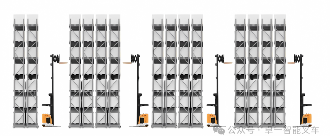 綜合客戶需求,卓一智能叉車給出了雙伸位剪叉車搭配雙伸位貨架的倉儲空間升級方案。