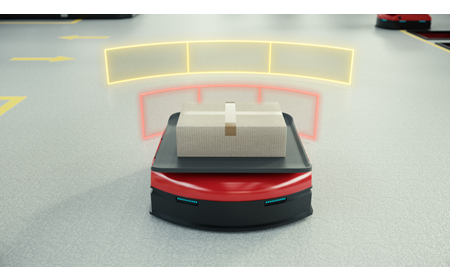 Kendrion 的安全環(huán)境最適合通過激光掃描儀監(jiān)控工作區(qū)域。AGV 的位置和速度受到永久監(jiān)控。當(dāng)物體進(jìn)入AGV環(huán)境時(shí),其速度可以安全地降低和再次增加,并且在必要時(shí)可以觸發(fā)緊急停止。大型安全過程映像(FSoE 框架)可為具有 STO、SS1、SLS 等安全功能的驅(qū)動(dòng)控制器提供最佳支持。因此,我們的安全解決方案為 AGV 的最大生產(chǎn)力做出了決定性的貢獻(xiàn)。