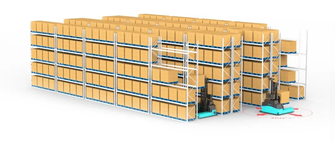 全向側(cè)叉式無人叉車的轉(zhuǎn)向方式是全向行駛,即舵輪不僅能前后運動,還能側(cè)向運動,并且角度可以自由轉(zhuǎn)動。這種轉(zhuǎn)向方式使得全向叉車可在狹窄空間實現(xiàn)轉(zhuǎn)彎,例如在小型倉庫或生產(chǎn)線等狹窄空間作業(yè)時,高層貨架進行存存, 最大限度利用空間,提升存儲容量。