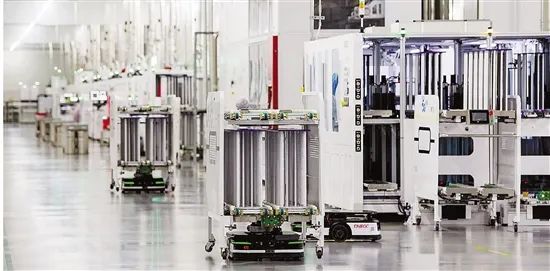 金華市橫店東磁太陽能電池片七廠內(nèi),承擔(dān)物流搬運(yùn)任務(wù)的AGV小車穿梭在各生產(chǎn)單元間。近年來,金華“5G+工業(yè)互聯(lián)網(wǎng)”融合步伐不斷加快,有力促進(jìn)企業(yè)提質(zhì)增效。