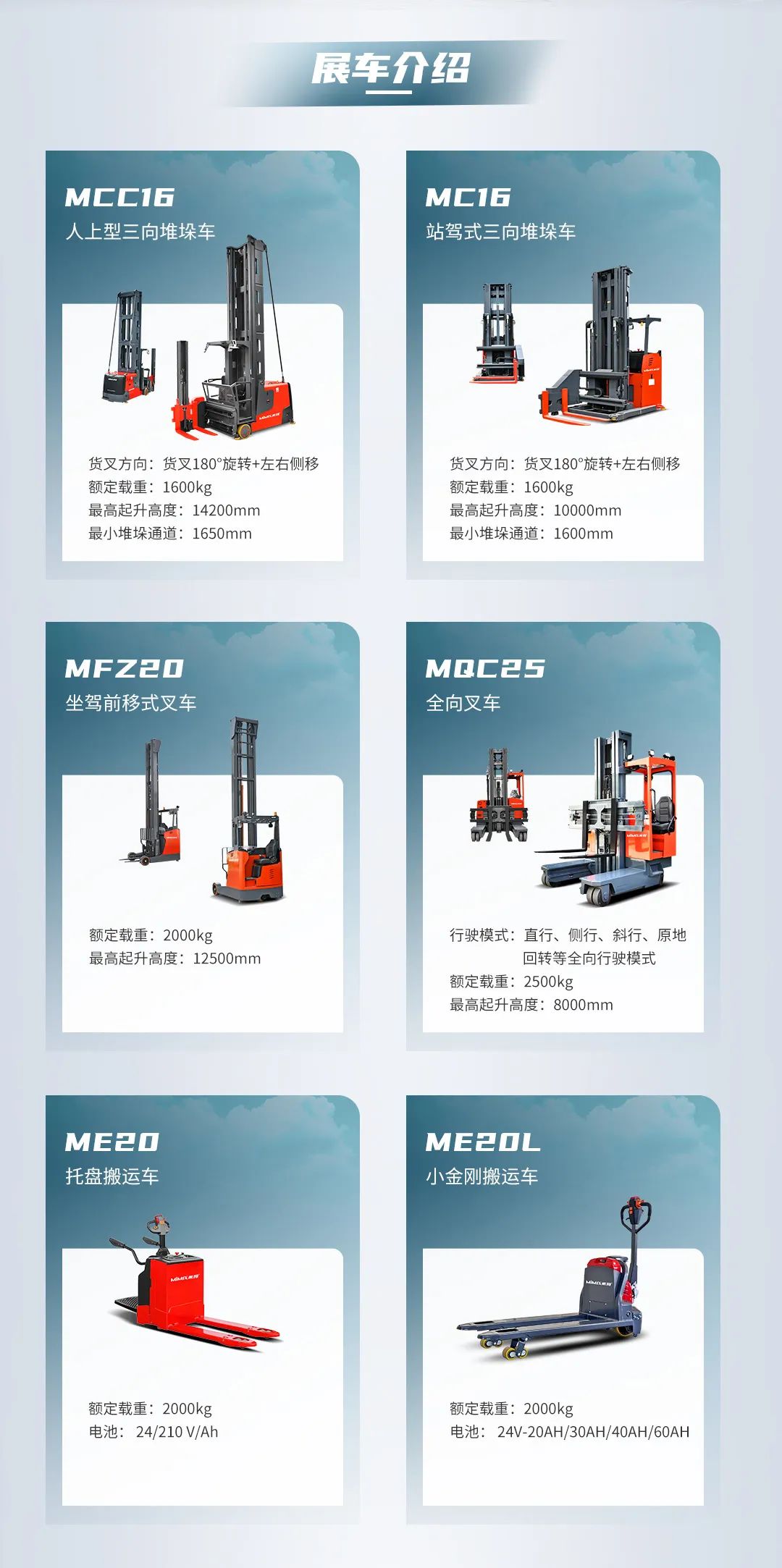 二十多年不斷進取, MIMA 品牌以公司強大的科研創(chuàng)新團隊為依托,以“安全、耐用、舒適、低碳(環(huán)保)”為設(shè)計理念,為客戶提供500KG —100000KG應(yīng)用解決方案、倉儲設(shè)備及 相關(guān)服務(wù)。 通過不斷的技術(shù)創(chuàng)新和專利積累,現(xiàn)在我們的產(chǎn)品已涉及12大類50多個品種,如電動托盤車搬運車、托盤堆垛車、前移式叉車、平衡重式叉車、牽引拖車、揀選車、窄巷道叉車、四向叉車、側(cè)面叉車和非常物流設(shè)備、AGV、無人巷道堆垛機等等。產(chǎn)品廣泛 應(yīng)用于醫(yī)藥、食品、化工、電子、機械、家具、物流等各個行業(yè)。