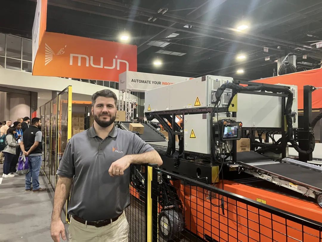 Mujin 的銷售總監(jiān) Josh Cloer 展示了該公司的 TruckBot,一款自動卸貨機(jī)