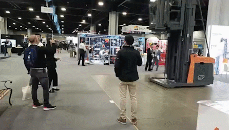 本次亮相北美的兩款叉車均為窄巷道車型:VUE人上行三向叉車以及RRE雙伸位剪叉車。