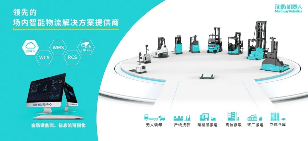 勱微機(jī)器人(Multiway Robotics)專注于先進(jìn)的機(jī)器人與人工智能技術(shù),為客戶提供產(chǎn)品級的智能制造及智慧物流解決方案;從底層核心傳感器,到核心算法,再到自主研發(fā)的無人化車型及上層系統(tǒng),整套端到端解決方案,形成一體化全棧式創(chuàng)新交付平臺。硬件產(chǎn)品包括:全品類的無人叉車及四向穿梭車;軟件系統(tǒng)包括:勱微云、WMS、RCS、WCS、現(xiàn)場管理系統(tǒng)及多種視覺解決方案。