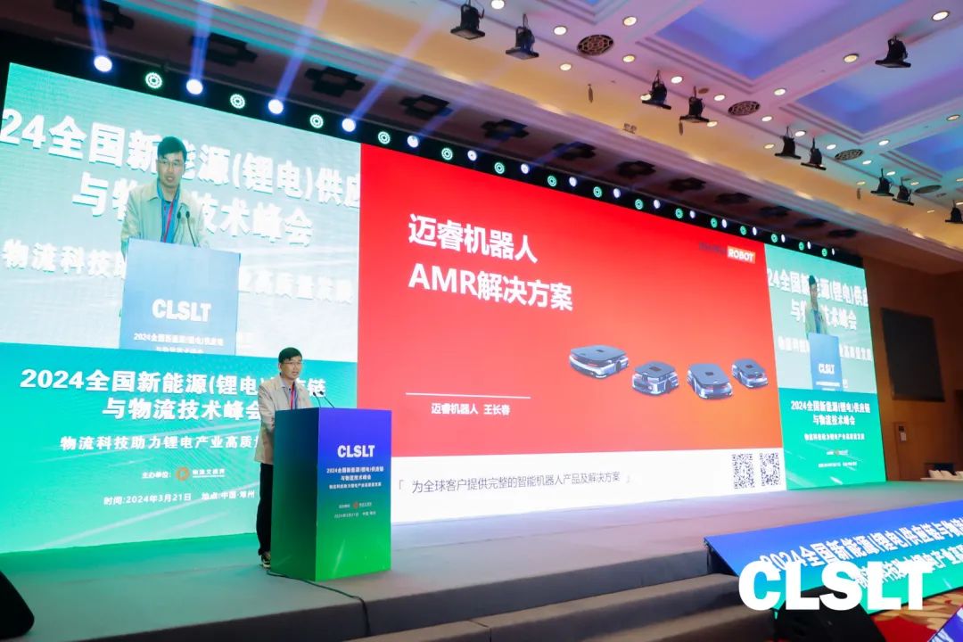 本次會(huì)議中,邁睿機(jī)器人華南區(qū)銷售總監(jiān)王長春先生基于邁睿機(jī)器人在新能源行業(yè)的落地經(jīng)驗(yàn)和豐富案例,在現(xiàn)場與來會(huì)嘉賓分享“邁睿AMR在新能源企業(yè)智慧物流與智能智造中應(yīng)用與實(shí)施”,講述邁睿移動(dòng)機(jī)器人及物流自動(dòng)化設(shè)備對當(dāng)前鋰電供應(yīng)鏈優(yōu)化發(fā)揮積極作用,一起積極探討智慧物流優(yōu)化鋰電制造業(yè)供應(yīng)鏈、全球供應(yīng)鏈的效率和穩(wěn)定性的有效方案。
