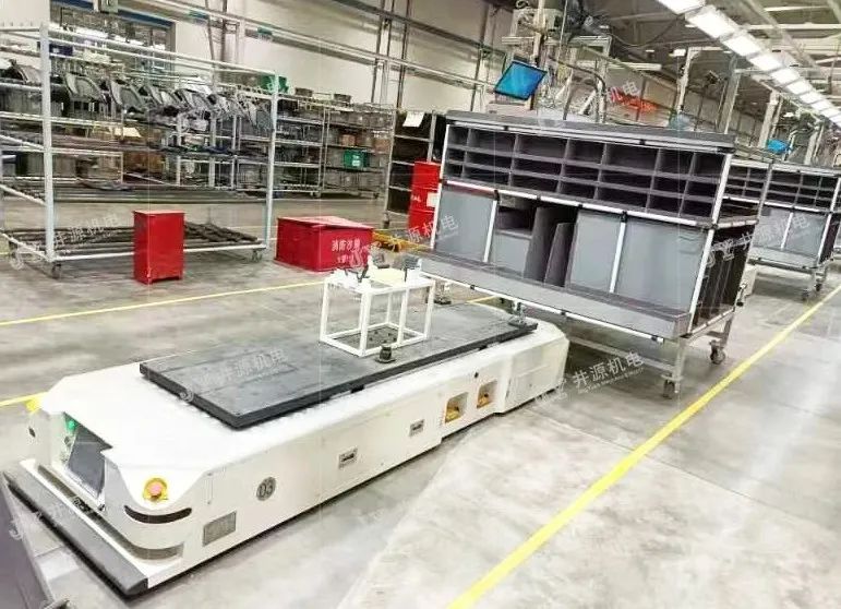 在家電行業(yè),裝配AGV也得到了很好的運(yùn)用。傳統(tǒng)家電行業(yè)物料體積大小不一,線邊對(duì)接物料轉(zhuǎn)運(yùn)頻繁,搬運(yùn)模式多為人工、半機(jī)械化,人員作業(yè)強(qiáng)度大,成本高,效率低,而裝配AGV可滿足不同型號(hào)家電機(jī)身的柔性化、信息化、智能化生產(chǎn),實(shí)現(xiàn)總裝、檢測(cè)、清洗、包運(yùn)等生產(chǎn)工藝的自動(dòng)化運(yùn)輸工作。