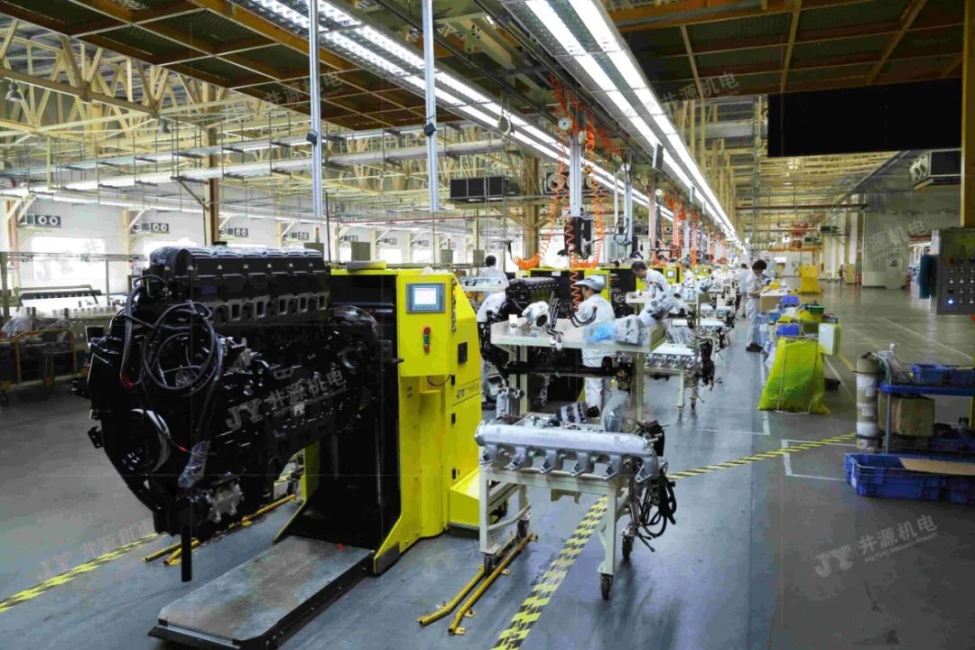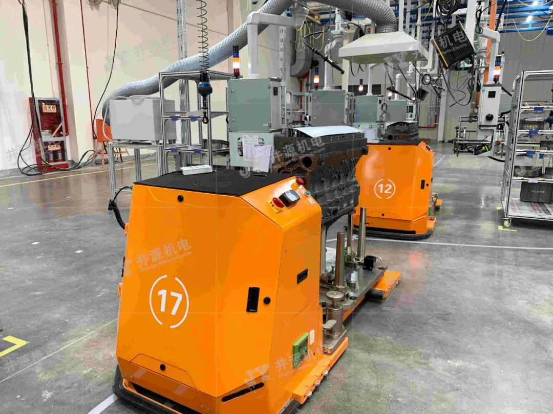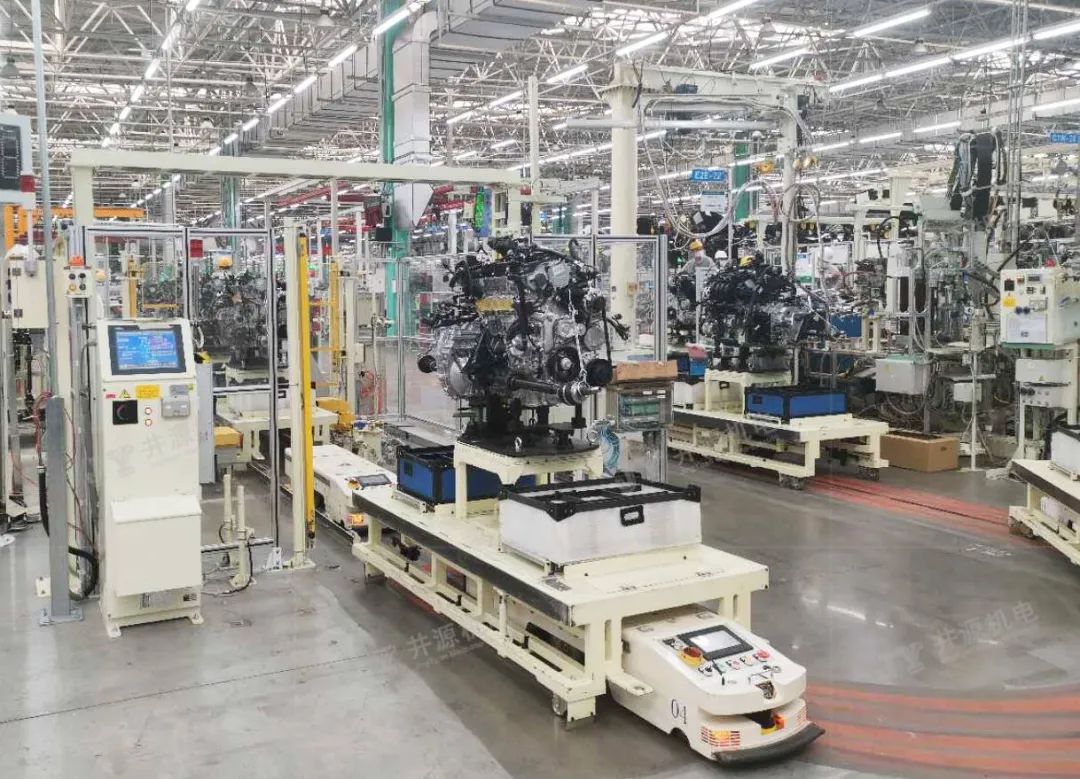 在發(fā)動(dòng)機(jī)裝配生產(chǎn)線上,井源機(jī)電柔性裝配型AGV能滿足多機(jī)型混線生產(chǎn),同時(shí)裝配型AGV能根據(jù)作業(yè)人員的身高,自動(dòng)調(diào)節(jié)發(fā)動(dòng)機(jī)到最佳裝配姿態(tài),從而降低人工作業(yè)難度,提高生產(chǎn)效率。發(fā)動(dòng)機(jī)的自動(dòng)對(duì)接、搬運(yùn)、升降、旋轉(zhuǎn)、人工裝配等功能,是企業(yè)實(shí)現(xiàn)發(fā)動(dòng)機(jī)智能化、信息化、柔性化、人性化生產(chǎn)的重要管理方式。