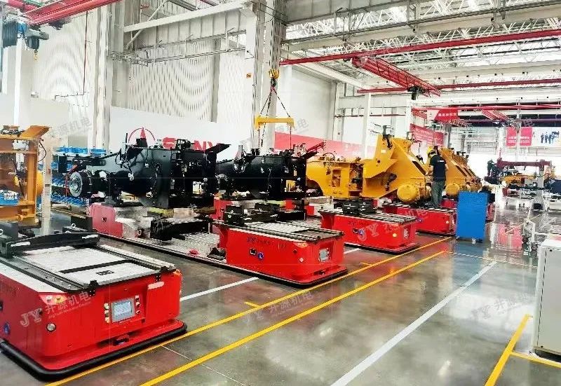 井源機(jī)電重載裝配型AGV負(fù)載30噸以下可定制,主要應(yīng)用于室內(nèi)工業(yè)物流搬運(yùn),主機(jī)工藝裝配及輔助裝配等場景。國內(nèi)某裝載機(jī)企業(yè),采用井源機(jī)電負(fù)載25噸重載裝配型AGV來完成裝載機(jī)裝配線的裝配工作,打造重工行業(yè)柔性化生產(chǎn)線,實(shí)現(xiàn)生產(chǎn)智能化識(shí)別、輸送、管理、信息交互等特點(diǎn),降低勞動(dòng)強(qiáng)度,大幅提高生產(chǎn)效率及生產(chǎn)質(zhì)量。