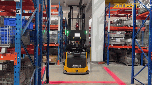 存/取物料場景中,眾倉在不改變倉儲貨架原有格局的基礎(chǔ)上,取/卸貨基于視覺識別,通過智能算法,精準(zhǔn)實時識別料籠空間位置,根據(jù)現(xiàn)實場景變化和實際貨物位置偏移情況,動態(tài)規(guī)劃叉取路徑,實現(xiàn)在有擋條的貨架庫中,超高精度高效存取,達(dá)到業(yè)界領(lǐng)先水準(zhǔn),全面滿足實際場景應(yīng)用需求。