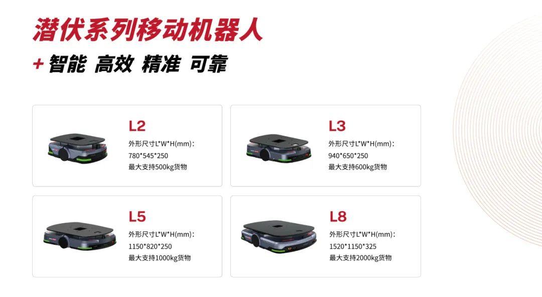 邁睿機器人一直致力于AMR技術(shù)的研發(fā)和應(yīng)用,擁有豐富的技術(shù)積累和實踐經(jīng)驗。目前邁睿機器人面向市場的第四代AMR產(chǎn)品,L2、L3、L5以及L8產(chǎn)品支持多種導(dǎo)航方式(激光SLAM、紋理導(dǎo)航、二維碼導(dǎo)航等)的靈活選擇,支持負載400KG-2000KG,滿足幾乎所有工業(yè)場景的需求。同時,支持前后270°避障、3D避障、示寬燈、智能語音交互等功能,運行速度可達2.0m/s,差速驅(qū)動和靈活的轉(zhuǎn)向能力使之能迅速地應(yīng)對各種復(fù)雜環(huán)境,可自主充電保證能夠?qū)崿F(xiàn)7*24小時的不間斷作業(yè),從而大幅提高工作效率。目前,邁睿潛伏式系列機器人已廣泛應(yīng)用于汽車,新能源,制造,3C電子、設(shè)備制造、醫(yī)藥、紡織、生物科技等行業(yè)。