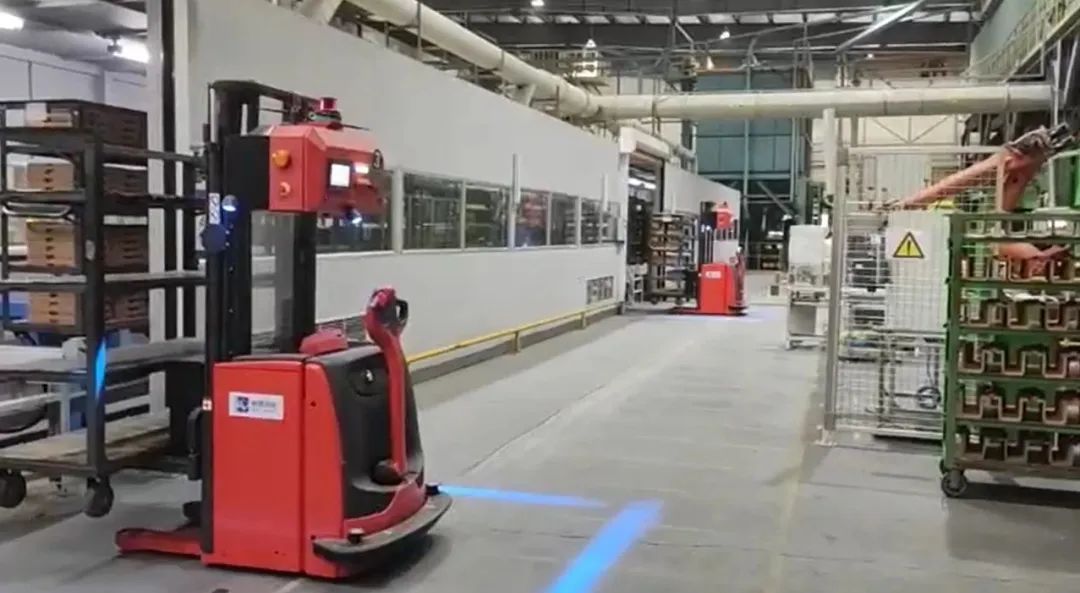在汽車行業(yè),叉車AGV同樣發(fā)揮著重要作用。汽車行業(yè)面臨著總裝模式非固定、客戶需求多變、車型不斷增加等挑戰(zhàn),這要求總裝線具備高度的靈活性和不確定性。傳統(tǒng)的物流作業(yè)方式往往受限于人力操作,容易發(fā)生誤操作、事故或貨物損壞。而叉車AGV通過(guò)自動(dòng)化和智能化的搬運(yùn)系統(tǒng),能夠有效解決這些問(wèn)題。AGV可以精確按照預(yù)設(shè)的路徑和程序進(jìn)行物料搬運(yùn),減少了人為操作的誤差和事故風(fēng)險(xiǎn)。同時(shí),AGV還能夠根據(jù)生產(chǎn)需求進(jìn)行靈活調(diào)度,提高了搬運(yùn)效率,滿足了汽車行業(yè)對(duì)物料搬運(yùn)的高要求。