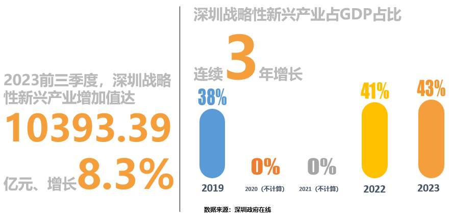 數(shù)據(jù)顯示,2023前三季度,深圳戰(zhàn)略性新興產(chǎn)業(yè)實現(xiàn)增加值10,393.67億元,同比增長8.3%,占GDP比重提升至42.5%,發(fā)展勢頭良好。智能網(wǎng)聯(lián)汽車、新能源,生物醫(yī)藥產(chǎn)業(yè)快速增長,是全市戰(zhàn)新產(chǎn)業(yè)增加值增長的主要動力。