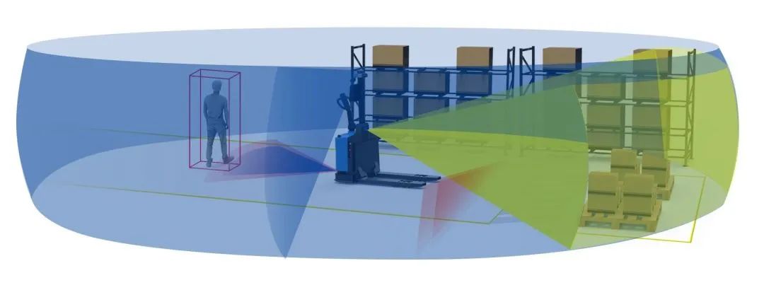 無(wú)人叉車周身最多可配置7-8顆激光雷達(dá),提供豐富穩(wěn)定的全方位立體感知信息,做到極致安全,極致穩(wěn)定,極致可靠。