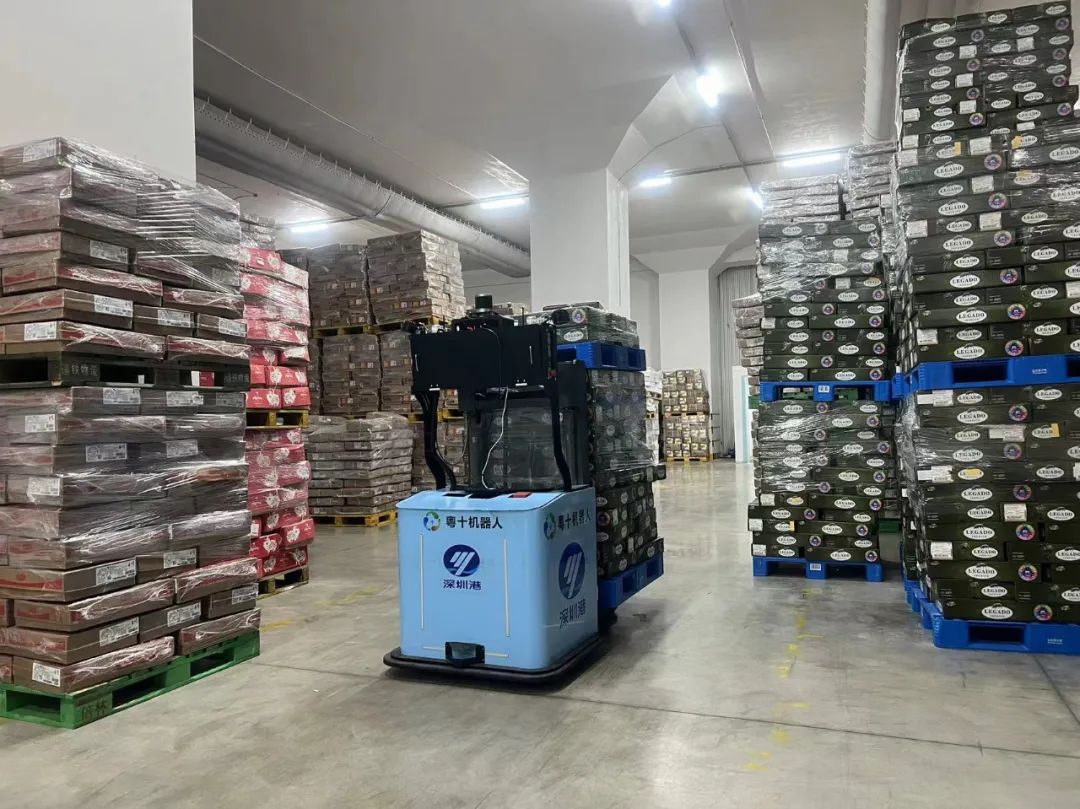 2023年,粵十機(jī)器人從保障作業(yè)人員健康、提升庫(kù)內(nèi)運(yùn)營(yíng)效率角度出發(fā),率先開展“冷庫(kù)智能無(wú)人機(jī)器人”項(xiàng)目開發(fā)工作。通過(guò)無(wú)人機(jī)器人代替?zhèn)鹘y(tǒng)人工搬運(yùn),結(jié)合動(dòng)態(tài)環(huán)境感知融合、多傳感器數(shù)據(jù)融合、3DSLAM精準(zhǔn)定位導(dǎo)航、智能群控調(diào)度算法、自主無(wú)線充電等技術(shù),優(yōu)化機(jī)器人行駛路徑、合理調(diào)度機(jī)器人作業(yè)、控制貨物叉放精準(zhǔn)度,避免不必要的空載行駛、重復(fù)搬運(yùn)和貨物調(diào)整,減少冷庫(kù)的開門次數(shù)和時(shí)長(zhǎng),提升操作效率、降低冷庫(kù)能耗;實(shí)時(shí)記錄和傳輸貨物的位置和狀態(tài)信息,提升冷庫(kù)貨物管理水平,并與已上線的深圳港智慧冷鏈服務(wù)平臺(tái)無(wú)縫對(duì)接,將物流系統(tǒng)納入生產(chǎn)環(huán)節(jié)全過(guò)程,打造區(qū)域智慧冷庫(kù)標(biāo)桿。