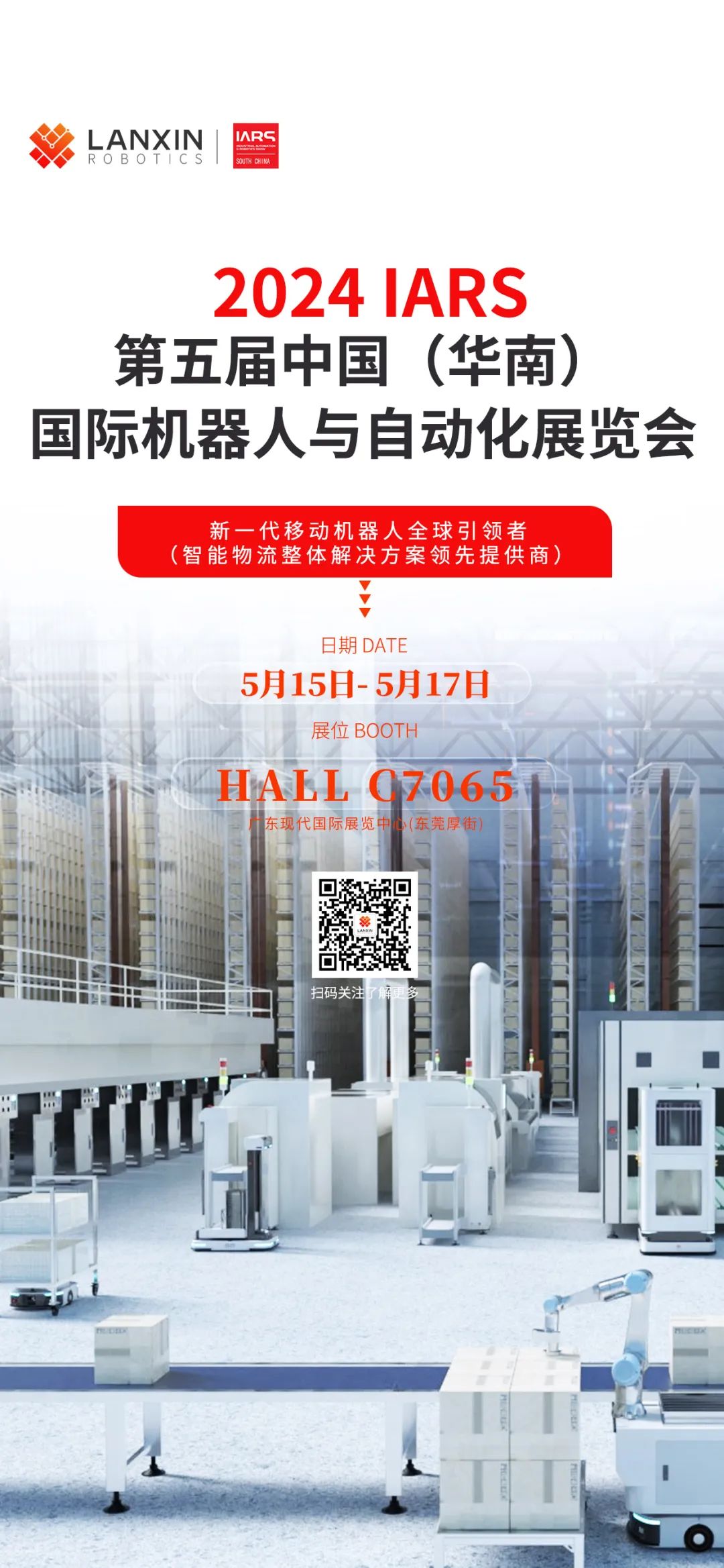 5月15-17日,藍(lán)芯科技將亮相第五屆中國(guó)(華南)國(guó)際機(jī)器人與自動(dòng)化展覽會(huì)(2024 IARS)。