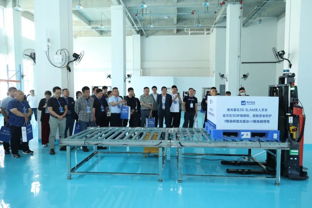 在參觀環(huán)節(jié)中,我們展示了5臺(tái)無人叉車在常見工廠場景中協(xié)同運(yùn)行的工作流程,從場景設(shè)計(jì)到建圖定位、任務(wù)設(shè)置再到測試運(yùn)行,這一切僅用一天即高效完成,不僅體現(xiàn)了鐳神智能3D SLAM無人叉車的快速部署和無需改造場地的強(qiáng)大優(yōu)勢,同時(shí)也映射出實(shí)際項(xiàng)目同樣具備如此高效的實(shí)施能力。