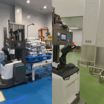 二期項目共42臺AGV,潔凈區(qū)域13臺堆高式AGV;上聽間11臺堆高式AGV;外包18臺堆高式AGV。