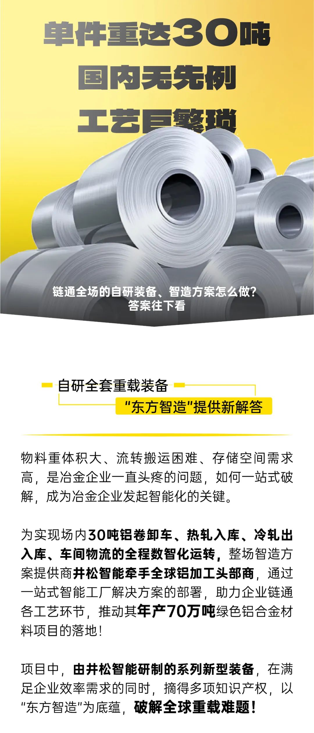 井松智能錨定行業(yè)最新發(fā)展方向,以方案+技術(shù)+研發(fā)全鏈工具為依托,帶動鋁加工企業(yè)智造升級;業(yè)內(nèi)稀缺型全套重載設(shè)備的研制,助力全球冶金產(chǎn)業(yè)鏈打破傳統(tǒng)桎梏,向高質(zhì)量高凈值高效能階段大步邁進!